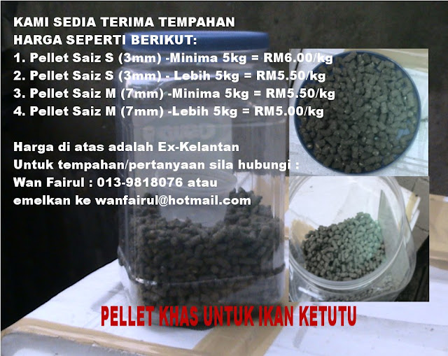 Tapi pellet yang macam mana nak bagi ketutu ni makan? Gambar pellet tersebut ada posting kat ruangan iklan di sebelah ni, siap dgn harga sekali tu.